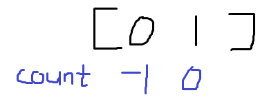 배열을 순차적으로 순회하며 0이면 -1, 1이면 +1을 해주는 count 변수를 만들어줍니다.